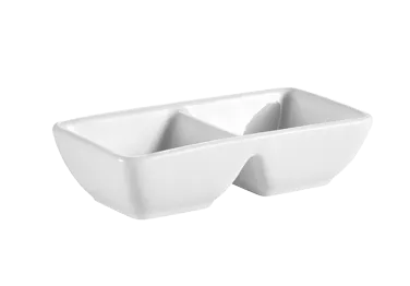 Create a seamless experience with the CAC China CN-2T10 China Compartment Dish Bowl. This rectangular porcelain plate is designed for commercial restaurant use, offering a convenient and stylish way to serve side dishes. With two compartments and a capacity of 10 oz. per compartment, it allows for easy portioning and presentation of different food items. The plate is dishwasher, oven, and microwave safe, ensuring durability and versatility in a busy restaurant kitchen. Its Super White color adds a touch of elegance to any table setting, while the 10"L x 4"W x 1-5/8"H dimensions provide ample space for a variety of culinary creations.