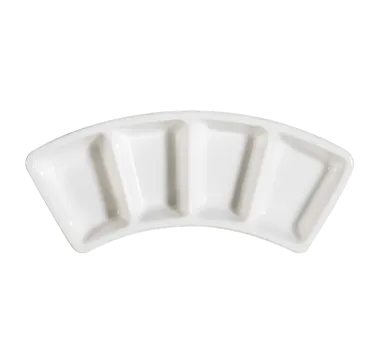 Set your restaurant apart with the CAC China CN-4B8 Plate/Platter. This arched rectangle dish is designed to elevate your culinary creations and impress your guests. With four compartments, it allows you to serve a variety of dishes in one elegant presentation. Made of durable porcelain, this dish is dishwasher, oven, and microwave safe, making it perfect for busy commercial kitchens. The Bone White color adds a touch of sophistication to any table setting. Whether you're serving appetizers, entrees, or desserts, the CAC China CN-4B8 Plate/Platter is a versatile and stylish choice. Elevate your restaurant's dining experience with this high-quality and functional dish.