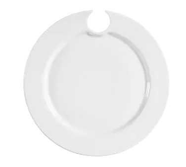 Introducing the CAC China COL-P8 Plate with Wine Glass Holder, a premium tool for a successful setup in any commercial restaurant. Crafted by CAC China, this plate is designed to elevate your dining experience. With a 9" diameter and 3/4" height, it provides ample space for your culinary creations. The round shape adds a touch of elegance, while the wine glass hole allows for convenient placement of stemware. Made from durable porcelain, this plate is dishwasher, oven, and microwave safe, ensuring easy cleaning and versatility in the kitchen. Its Super White color adds a sophisticated touch to any table setting. Whether you're serving appetizers, main courses, or desserts, this plate with a wine glass holder is a must-have for any restaurant looking to impress their guests. Elevate your dining experience with the CAC China COL-P8 Plate with Wine Glass Holder.