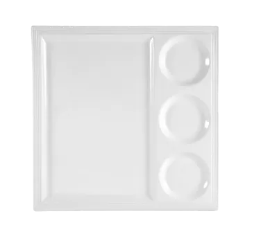 Introducing the CAC China, CTY-25 Tray, Compartment, China a must-have for commercial restaurants looking to elevate their reputation. This Citysquare Contemporary Tray is designed to impress with its sleek square shape and four compartments, perfect for serving a variety of dishes in an organized and stylish manner. Made of durable porcelain, this tray is dishwasher, oven, and microwave safe, ensuring convenience and versatility in a busy restaurant setting. Its generous size of 14"L x 14"W x 1/2"H allows for ample food presentation, while the Super White color adds a touch of elegance to any table. Upgrade your restaurant's dining experience with the CAC China, CTY-25 Tray, Compartment, China.