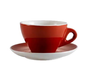 Introducing the CAC China E-11-R Cup & Saucer Sets, the perfect addition to any commercial restaurant. With its seamless food preparation, this two-piece set includes an 11 oz. round cup and a 6-1/2" round saucer, both made of durable porcelain. The vibrant Red/Super White color adds a touch of elegance to your table setting, while the dishwasher, oven, and microwave-safe design ensures easy cleaning and versatility. Whether you're serving hot beverages or delectable desserts, this cup and saucer set is built to withstand the demands of a busy restaurant environment. Elevate your dining experience with the CAC China E-11-R Cup & Saucer Sets and impress your customers with style and functionality.