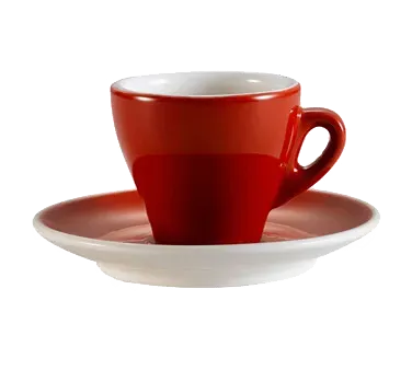 Stay ahead in culinary excellence with CAC China, E-3-R Cup & Saucer Sets. Designed for commercial restaurant use, this 2-piece set includes a 3-1/2 oz. cup and a 4-7/8" round saucer, both made of durable and dishwasher-safe porcelain. The vibrant Red/Super White color adds a touch of elegance to any table setting. These cup and saucer sets are not only microwave-safe but also oven-safe, allowing you to easily heat and serve your delicious creations. The compact size of the cup makes it perfect for serving espresso shots or small portions of desserts, while the saucer provides a convenient place to rest the cup. With CAC China, you can trust in the quality and reliability of their products, as they have been a trusted vendor in the industry. Elevate your restaurant's dining experience with CAC China, E-3-R Cup & Saucer Sets.