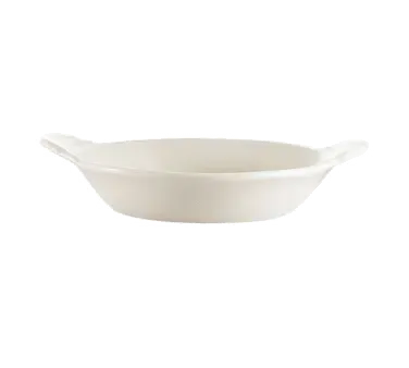 Stay at the culinary forefront with the CAC China, EGD-6, Au Gratin Dish. This oval dish is designed for commercial restaurant use, making it a must-have for any professional kitchen. With a capacity of 6 oz., it is perfect for serving individual portions of delicious au gratin dishes. The dish is made of durable stoneware (ceramic), ensuring it can withstand the demands of a busy restaurant environment. It is dishwasher, oven, and microwave safe, providing convenience and versatility. The bone white color adds a touch of elegance to any table setting, enhancing the presentation of your culinary creations. The dish features two handles, making it easy to transport from the oven to the table. Elevate your culinary creations with the CAC China, EGD-6, Au Gratin Dish.