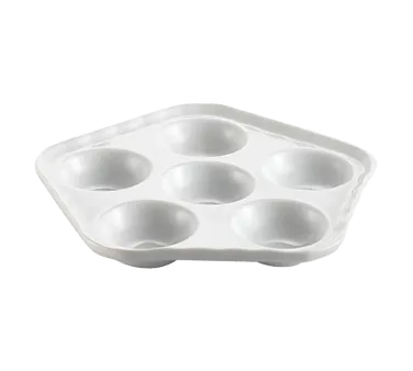 Set your restaurant apart with the CAC China ESD-5 Escargot Plate. Crafted by CAC China, a trusted vendor in the industry, this pentagon-shaped porcelain dish is designed to elevate your culinary creations. Measuring 5-1/2" x 5-1/2" x 1-1/4"H, it provides the perfect presentation for escargot dishes. The Super White color adds a touch of elegance to your table setting, while the dishwasher, oven, and microwave-safe properties ensure convenience and durability in a busy commercial restaurant environment. Whether you're running a fine dining establishment or a casual bistro, this escargot plate is a must-have for showcasing your culinary expertise. Enhance your restaurant's reputation with the CAC China ESD-5 Escargot Plate and impress your customers with every dish.