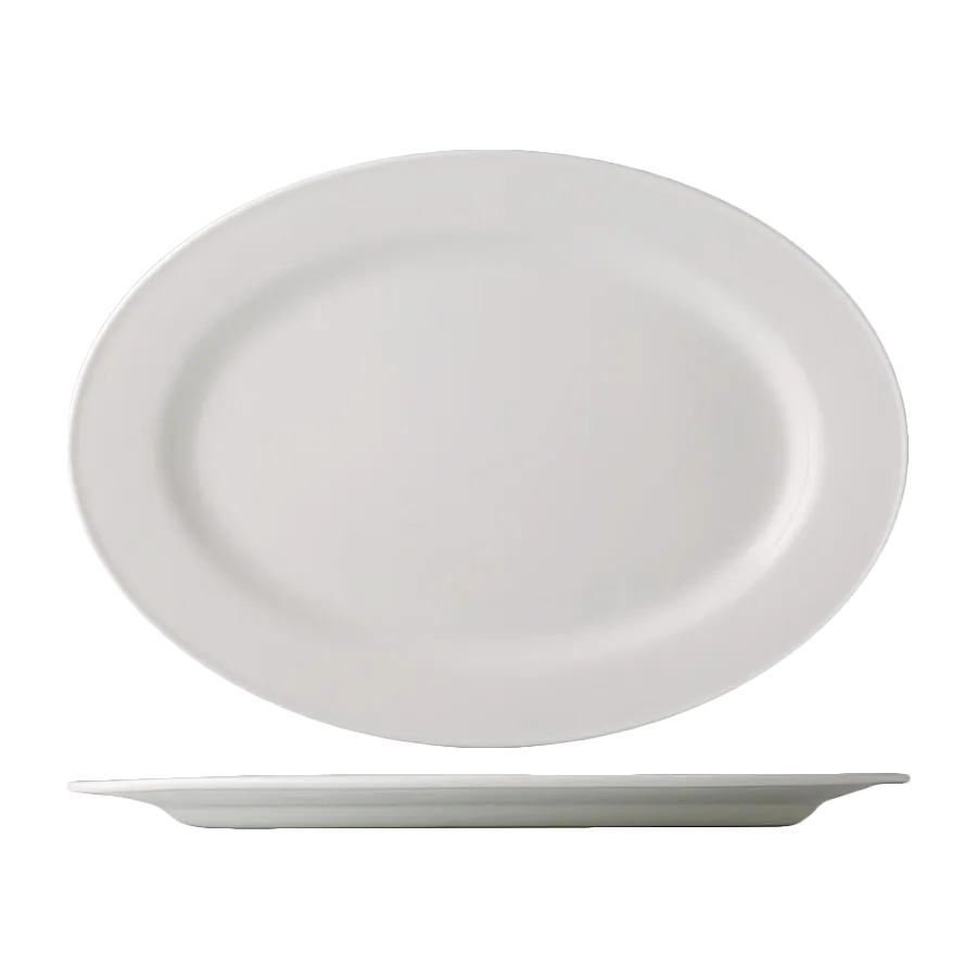 Introducing the CAC China EVT-14 Platter, China a must-have for commercial restaurants that set standards for excellence. Crafted by CAC China, a renowned vendor in the industry, this oval platter is designed to elevate your dining experience. With a length of 12-3/4 inches, it provides ample space to showcase your culinary creations. The glazed foot and bead edge add a touch of sophistication, while the bone white porcelain exudes elegance. Fully vitrified, this platter is dishwasher, oven, and microwave safe, ensuring convenience and durability in a busy restaurant environment. Whether you're serving appetizers, main courses, or desserts, the CAC China EVT-14 Platter is the perfect choice for presenting your dishes in style. Elevate your restaurant's aesthetic and impress your guests with this exceptional platter.