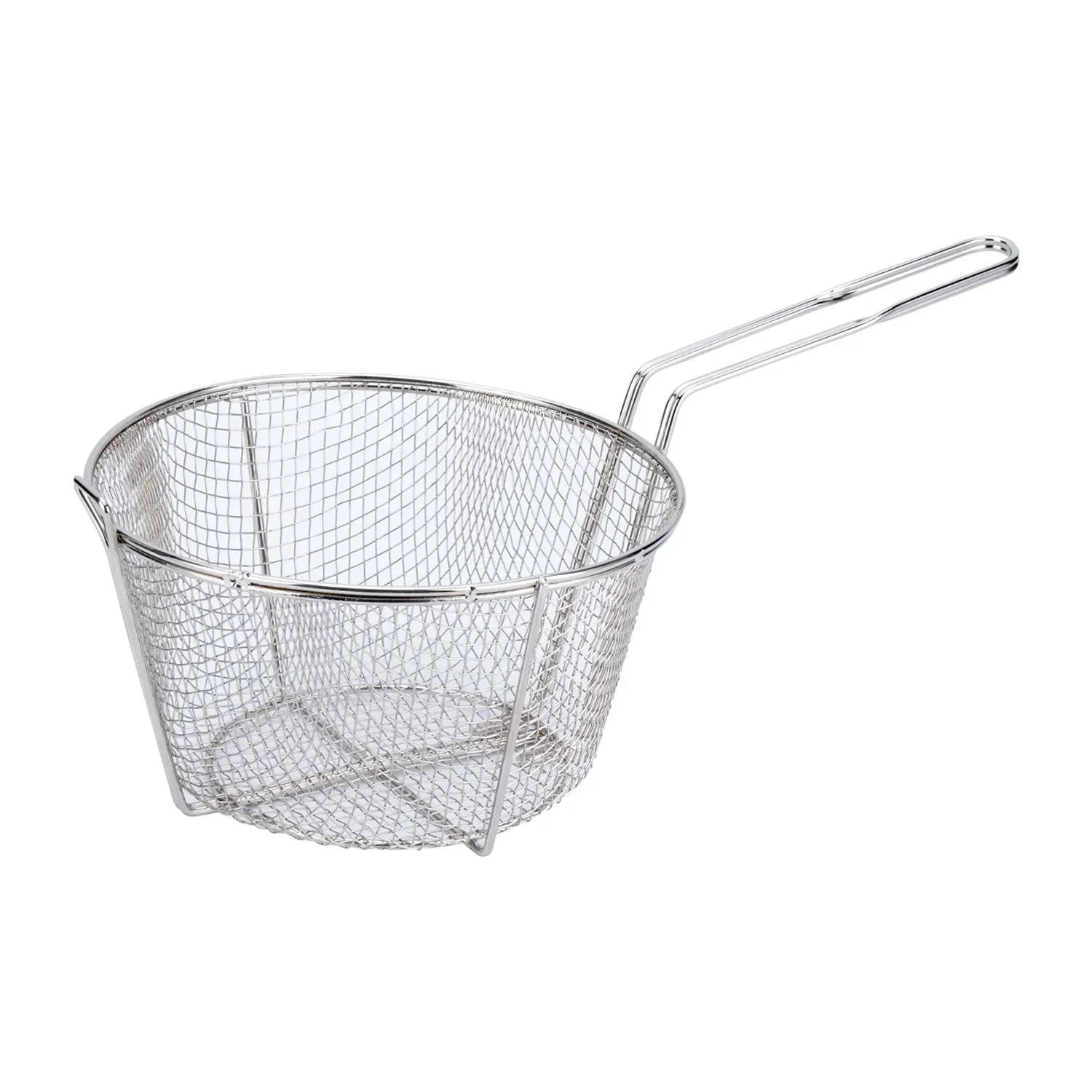 Perfectly sized for everyday dining or special occasions alike, the Nickel-Plated Fry Basket is an essential tool for any restaurant kitchen. With its 1/4" mesh and an 8-1/2" diameter, this fry basket is designed to deliver consistent, high-quality results, whether you're preparing crispy fries, golden onion rings, or any other fried delicacy. The nickel-plated finish not only enhances durability but also ensures easy cleaning and maintenance, making it a reliable choice for busy culinary environments.