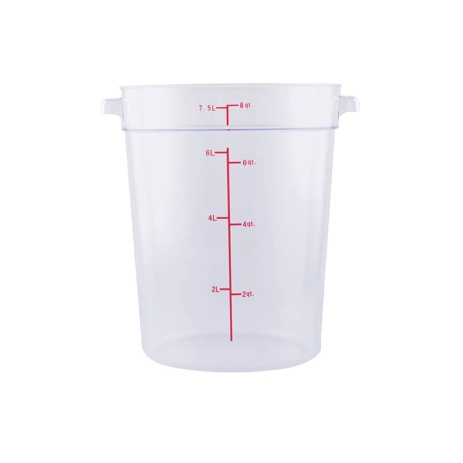 With an 8-quart capacity, this food storage container provides ample space for bulk storage, helping to keep your kitchen organized and efficient. Its round shape facilitates easy cleaning and ensures a snug fit in refrigerators or storage shelves. Whether you're prepping for a busy dinner service or organizing your pantry, the FS1P-8C Food Storage Container is a reliable choice for maintaining freshness and quality in your culinary creations.
