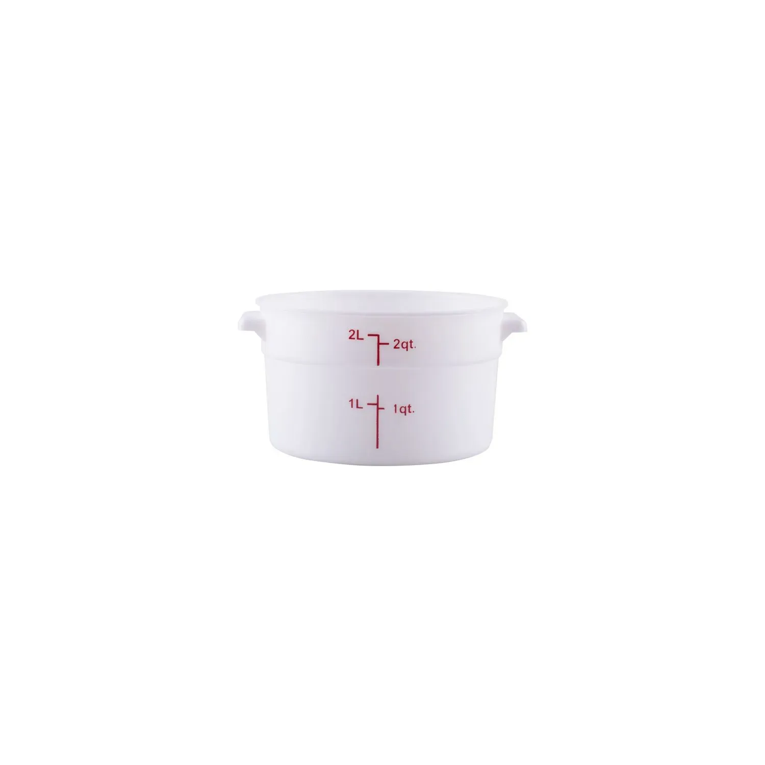A practical choice for serving food in any establishment, the FS2P-2T Food Storage Container is an essential addition to your restaurant's kitchen. Crafted from high-quality, transparent polypropylene, this round container offers a generous 2-quart capacity, making it perfect for storing a variety of ingredients, from fresh produce to prepared sauces. Its transparency allows for easy identification of contents, streamlining your kitchen operations and reducing the time spent searching for ingredients.