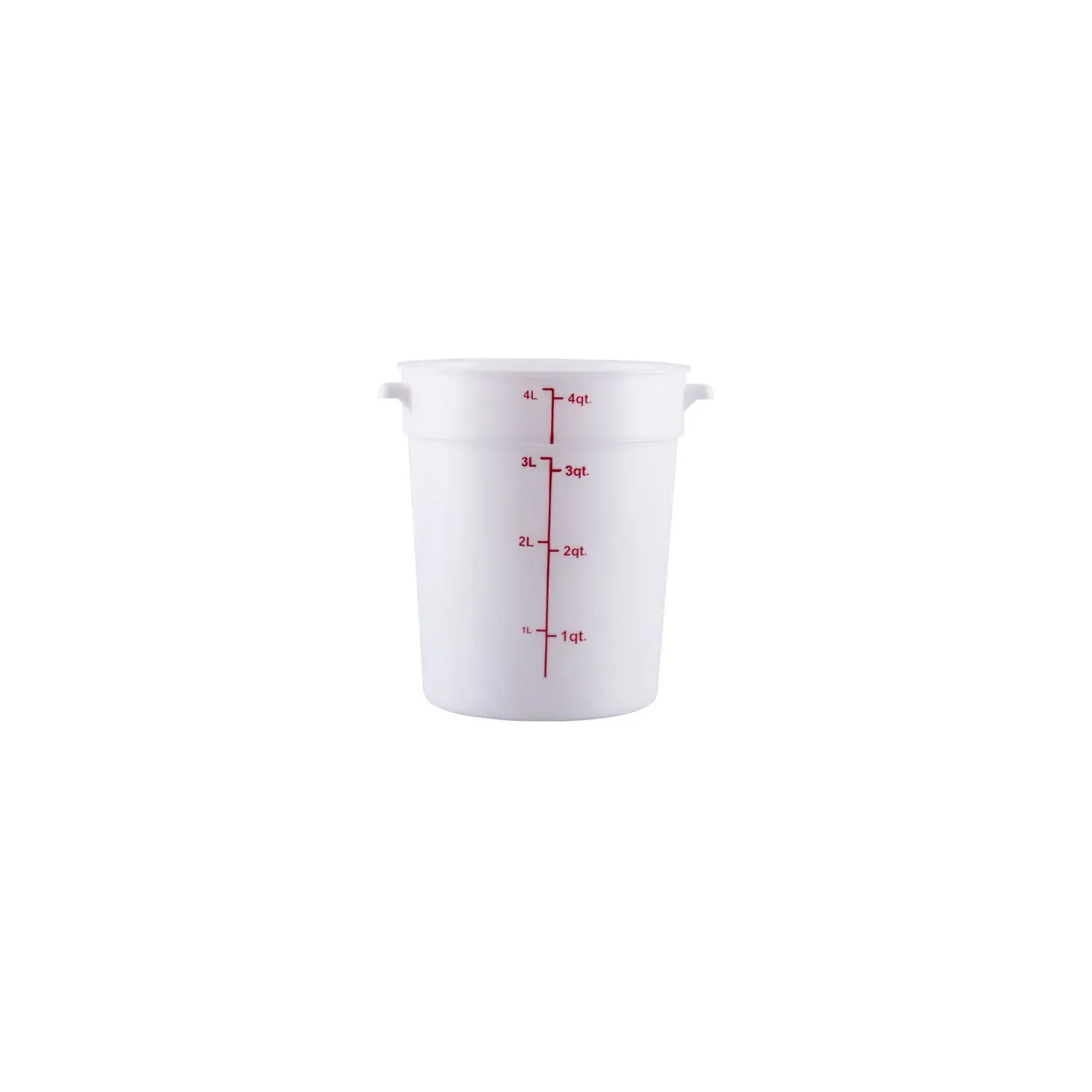 A practical choice for busy kitchens requiring durable kitchenware, the FS3P-4W Food Storage Container is an essential addition to any restaurant setting. Designed with efficiency and longevity in mind, this round, 4-quart container is crafted from high-quality polypropylene (PP) in a classic white finish, ensuring it seamlessly integrates into any kitchen environment.