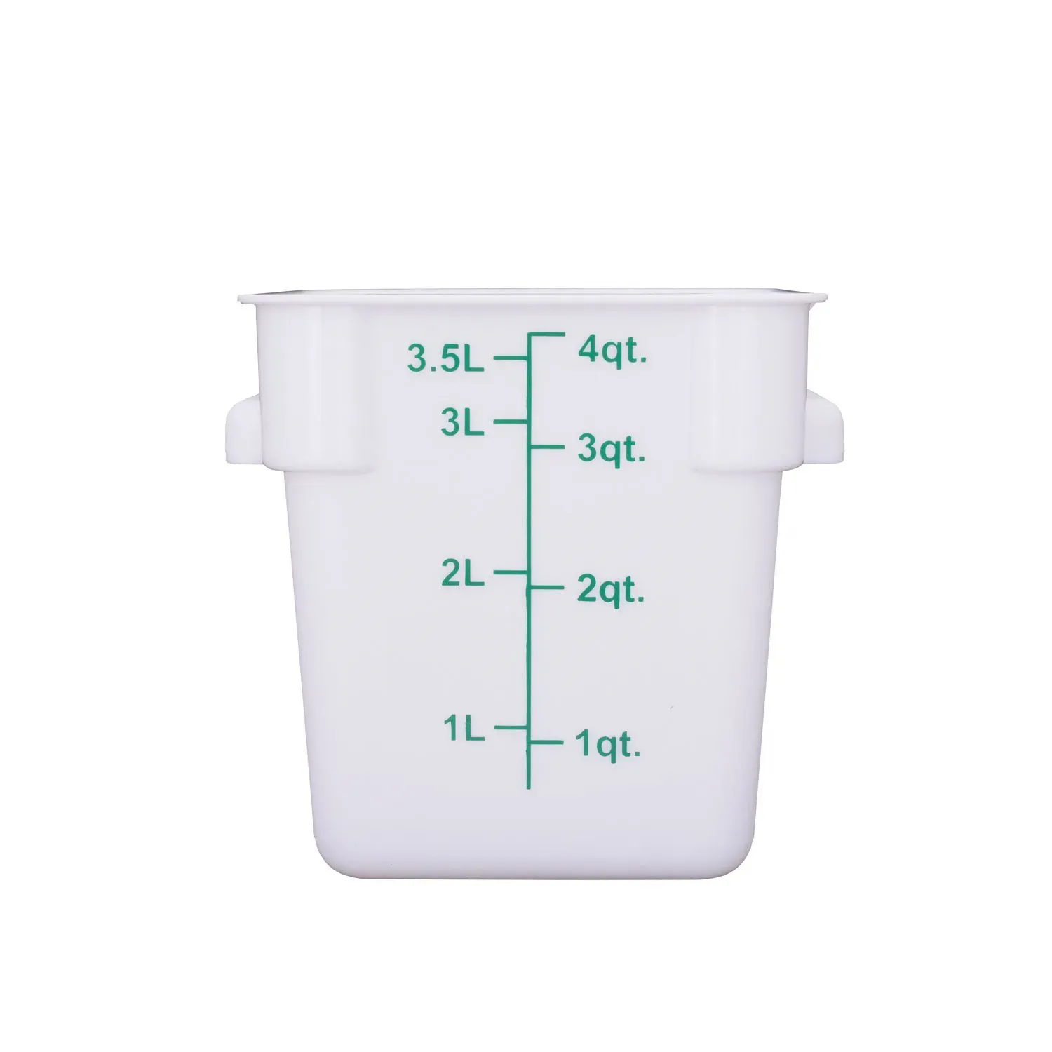 Provides an elegant way to serve small portions and desserts, the FS3P-SQ4W Food Storage Container is an essential addition to any restaurant's kitchen. Crafted from durable polypropylene, this square, white container offers a sleek and professional appearance, perfect for both back-of-house storage and front-of-house presentation. With a capacity of 4 quarts, it is ideally suited for storing ingredients, prepped items, or even showcasing small desserts and side dishes.