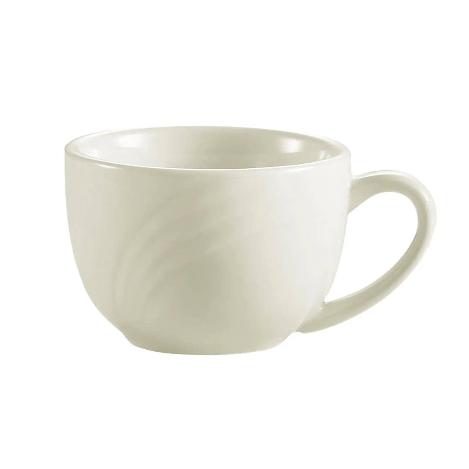 Create a seamless dining experience with the CAC China GAD-1 Cups. These elegant and versatile cups are perfect for commercial restaurant use. Made of durable porcelain, they can withstand the rigors of a busy kitchen, making them dishwasher, oven, and microwave safe. The round shape and embossed design add a touch of sophistication to any table setting. With a capacity of 7 oz., these cups are ideal for serving coffee, tea, or other hot beverages. The Bone White color complements any decor and enhances the presentation of your drinks. Trust CAC China, a reputable vendor in the industry, to provide you with high-quality cups that will impress your customers and elevate their dining experience.