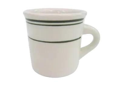 Optimize kitchen operations with the CAC China GS-38 Mug. This authentic stoneware mug is designed to enhance the dining experience in commercial restaurants. With a capacity of 8 oz., it is perfect for serving hot beverages like coffee, tea, or hot chocolate. The tall and round shape adds a touch of elegance to any table setting, while the dishwasher, oven, and microwave-safe construction ensures easy cleaning and versatility. The green band detail on the mug adds a pop of color to your presentation, while the American white finish exudes a classic and timeless appeal. Elevate your beverage service with the CAC China GS-38 Mug.
