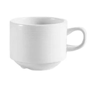 Introducing the CAC China HMY-1-S Cups, China - premium tools for a successful setup in your commercial restaurant. Crafted by CAC China, a trusted vendor in the industry, these Harmony Coffee Cups are designed to elevate your dining experience. With a capacity of 8-1/2 oz., these round cups are perfect for serving hot beverages like coffee or tea. The stackable design allows for efficient storage, saving valuable space in your restaurant. Made of durable porcelain, these cups are dishwasher, oven, and microwave safe, ensuring convenience and versatility in a busy kitchen. The embossed details add a touch of elegance to your table setting, impressing your customers. With a super white finish, these cups exude sophistication and complement any restaurant decor. Upgrade your restaurant's drinkware collection with the CAC China HMY-1-S Cups, China.