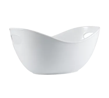 Elevate culinary experiences with the CAC China, ICB-15 Ice Bucket. This oval-shaped ice bucket is designed to enhance the ambiance of any commercial restaurant. With a generous capacity of 4 quarts, it can hold plenty of ice to keep beverages chilled throughout the day. The deep design ensures that the ice stays frozen for longer periods, reducing the need for frequent refills. The handles make it easy to transport the bucket from the kitchen to the dining area, allowing for efficient service. Made of durable porcelain, this ice bucket is dishwasher, oven, and microwave safe, making it a versatile addition to any restaurant's kitchen. Its super white color adds a touch of elegance to any table setting, making it perfect for upscale dining establishments. Trust CAC China for high-quality, functional, and stylish restaurant supplies.