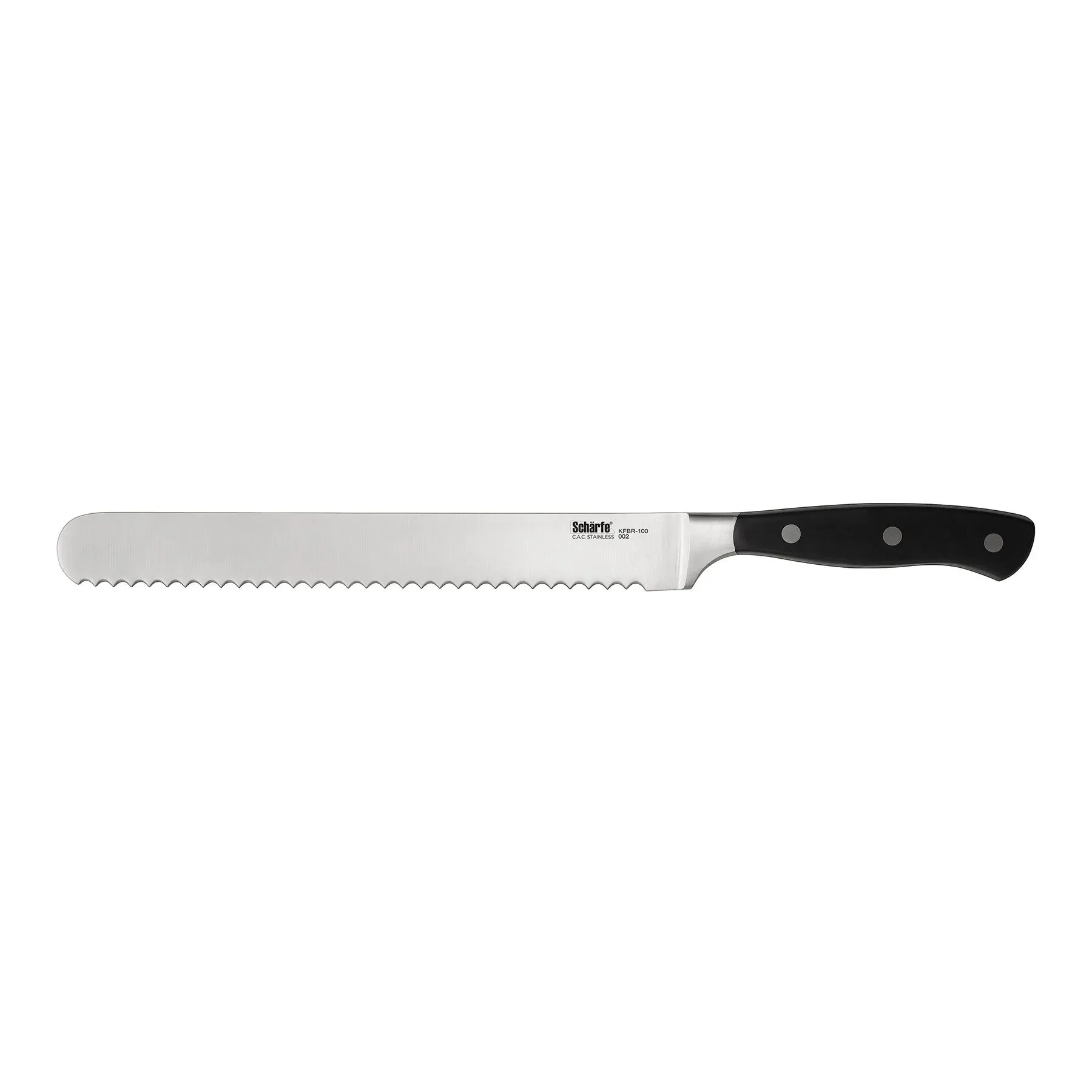 Provides a clean and stylish look for any food service, the Scharfe Bread Knife is an essential tool for any restaurant kitchen. Crafted with precision, this forged knife features a straight, 10-inch blade designed to effortlessly slice through all types of bread, from crusty baguettes to soft brioche. The Scharfe Bread Knife ensures each cut is smooth and uniform, enhancing the presentation of your bread service.