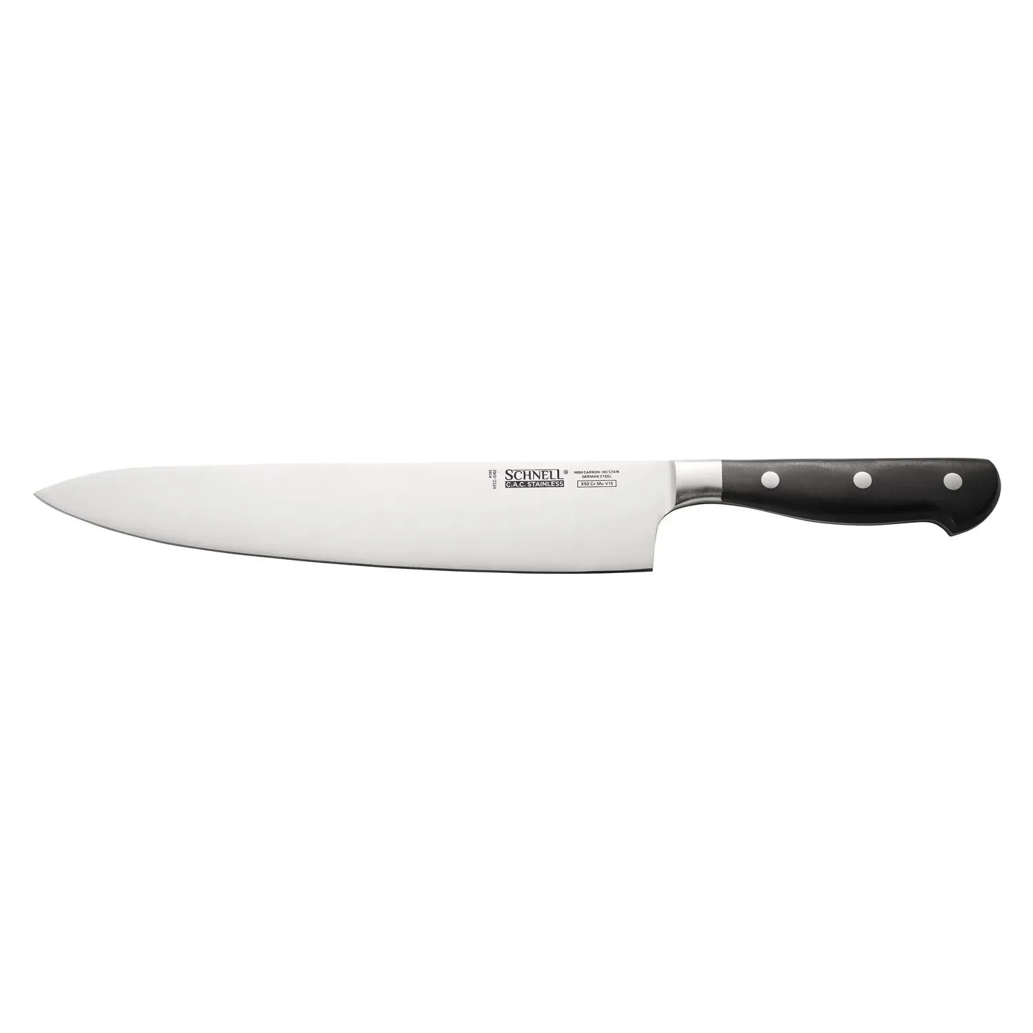 Essential kitchenware for serving dishes and drinks with style, the Schnell Chef Knife is a must-have for any professional restaurant kitchen. With its impressive 12-inch blade, this knife is designed to handle a variety of culinary tasks with precision and ease. The Schnell Chef Knife, model KFCC-G102, is crafted to meet the high demands of a bustling restaurant environment, ensuring that chefs can perform their best work efficiently.