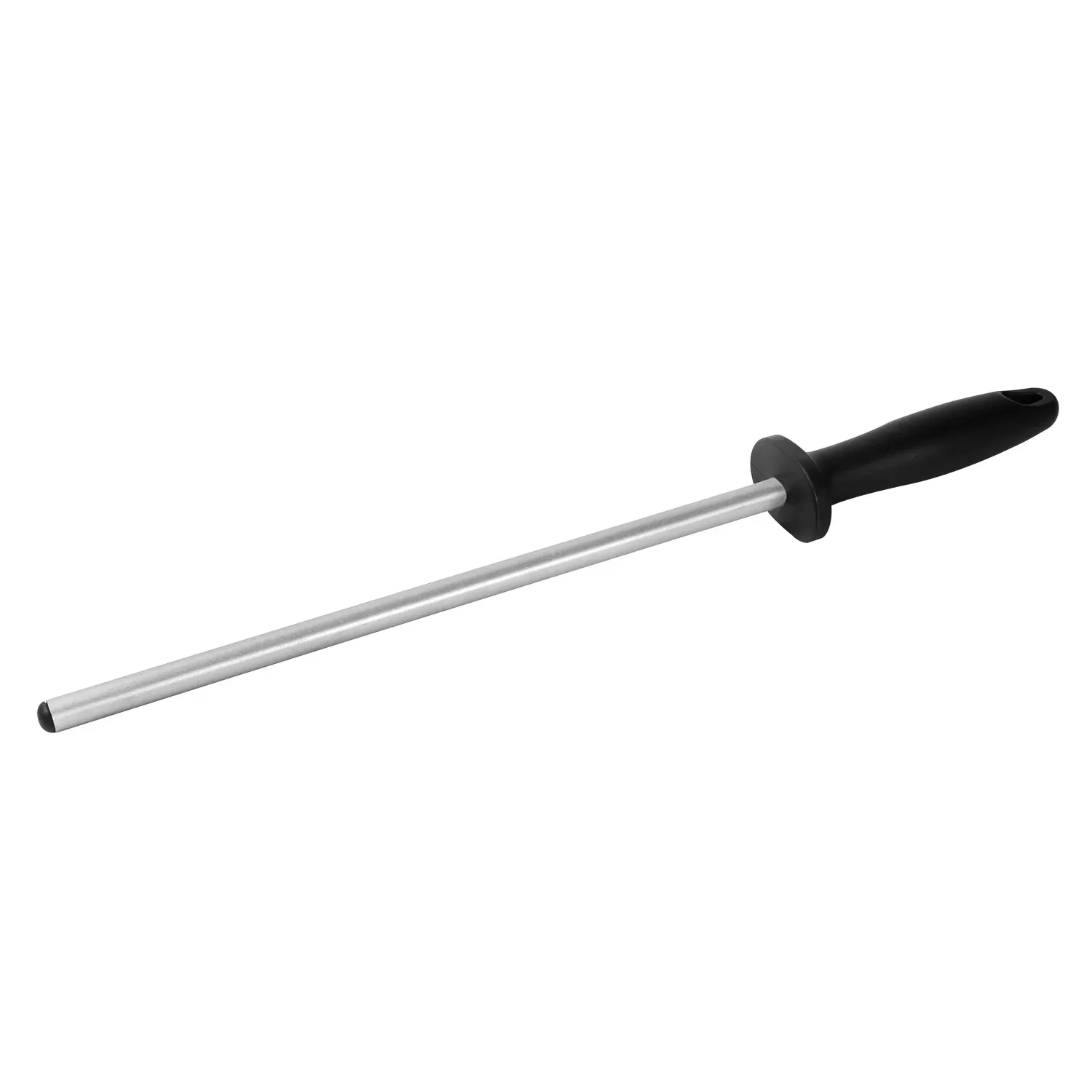 Elevate your kitchen toolkit with our premium 12" round sharpening steel, expertly diamond-coated to deliver unparalleled precision and longevity. This essential culinary accessory ensures your knives remain razor-sharp, enhancing both safety and performance in the kitchen. The diamond coating provides a superior abrasive surface, effortlessly honing your blades to perfection with each use. Designed for both professional chefs and home cooking enthusiasts, its ergonomic handle offers a comfortable grip, allowing for controlled, efficient sharpening every time. The robust steel construction ensures durability, while the streamlined design makes it easy to store or hang within reach. Whether you're slicing, dicing, or chopping, maintaining peak blade performance has never been easier. With our diamond-coated sharpening steel, achieve the perfect edge swiftly and effectively, making your culinary tasks seamless and enjoyable. Invest in quality and precision, and experience the difference in your food preparation today. Your knives deserve the best care, and this sharpening steel is the ultimate tool to keep them in optimal condition, ensuring they stand the test of time in your kitchen.