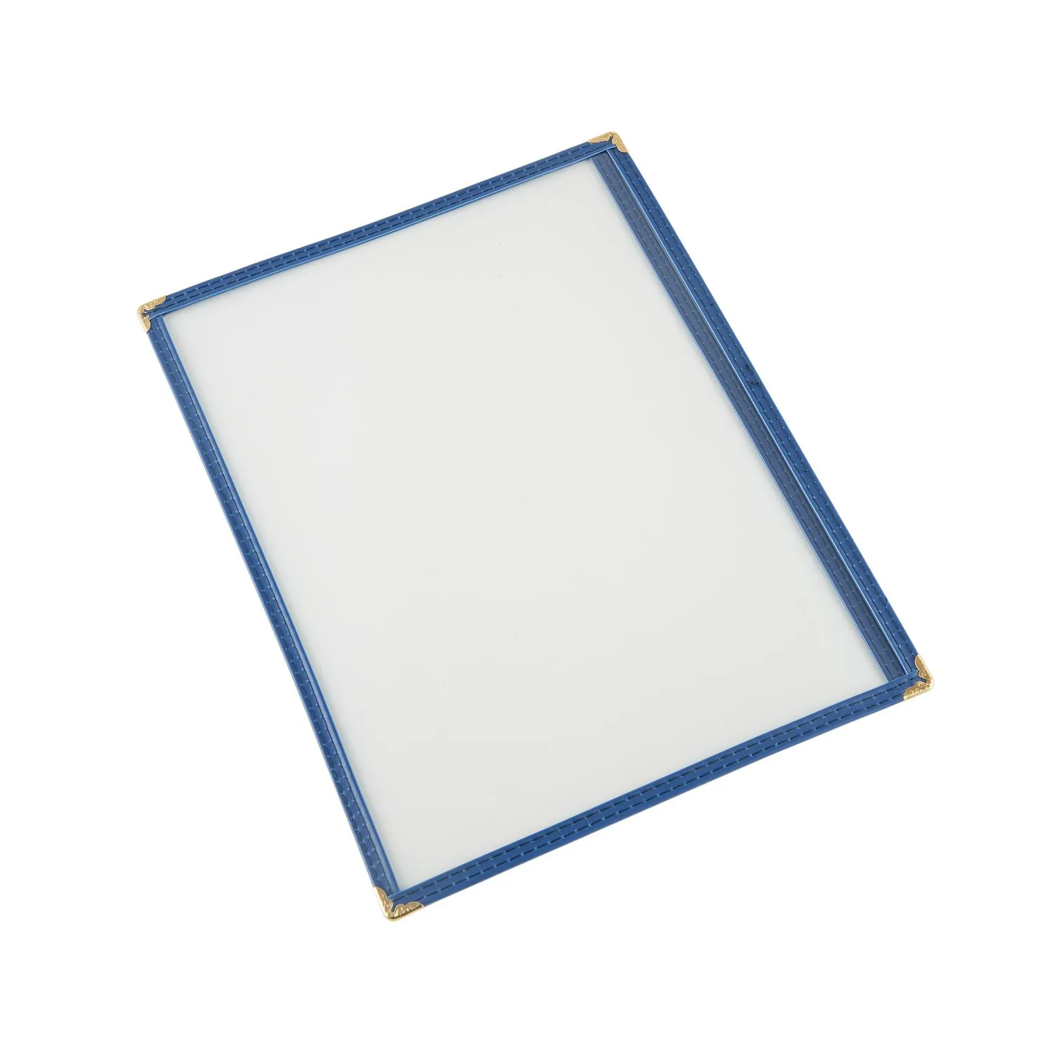 The perfect tool for professional kitchens and home chefs alike, the Blue Elegance Menu Cover is designed to elevate the dining experience in any restaurant setting. Crafted with precision, this 1-pocket menu cover is tailored to fit standard 8-1/2 x 11" menus, ensuring a snug and secure fit for your carefully curated offerings. The striking blue color adds a touch of sophistication and modernity, making it an ideal choice for establishments that value both style and functionality.