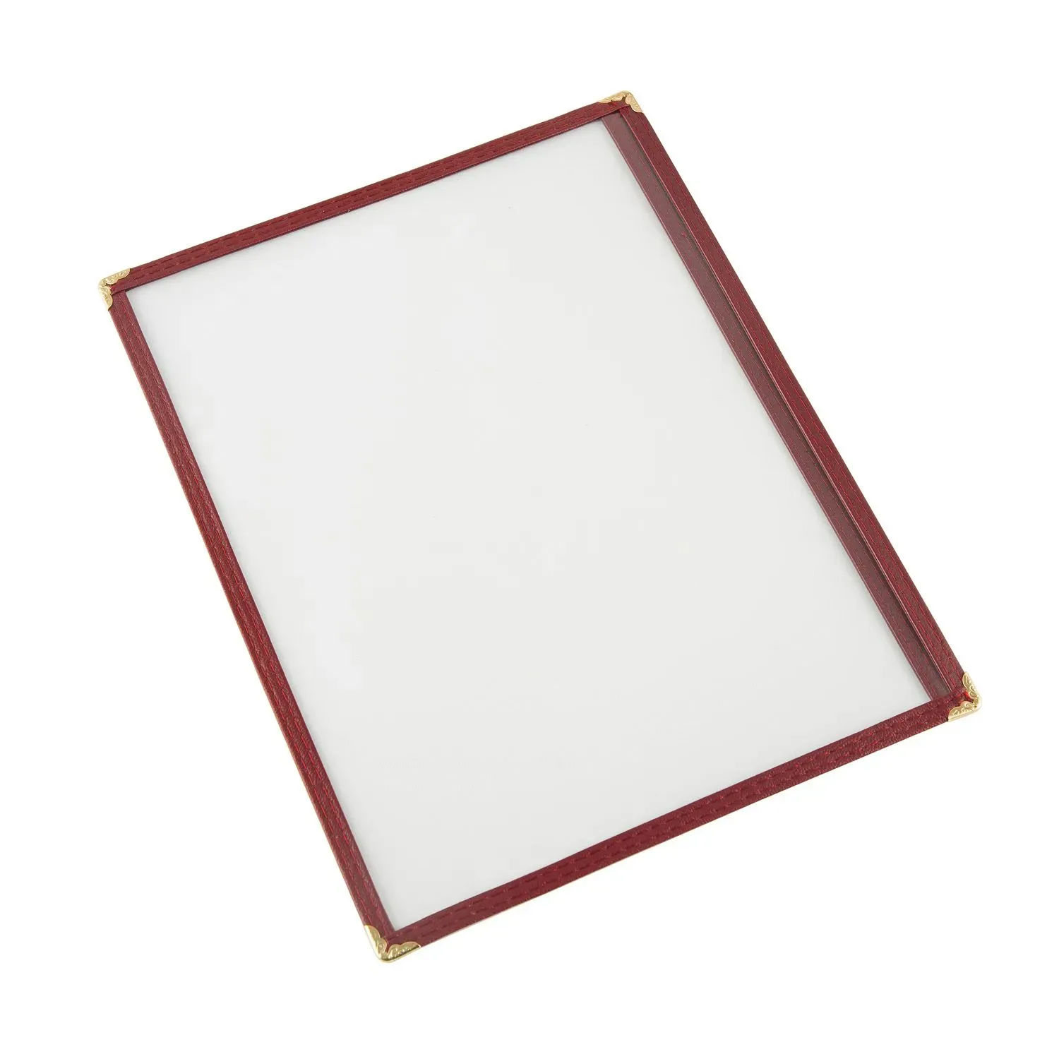 The perfect tool for professional kitchens and home chefs alike, the Burgundy Menu Cover is an essential addition to any restaurant setting. Designed with elegance and functionality in mind, this 1-pocket menu cover is perfect for showcasing your culinary offerings in style. Measuring 8-1/2 x 11 inches, it provides ample space for your menu pages, ensuring that your guests can easily peruse your selections.