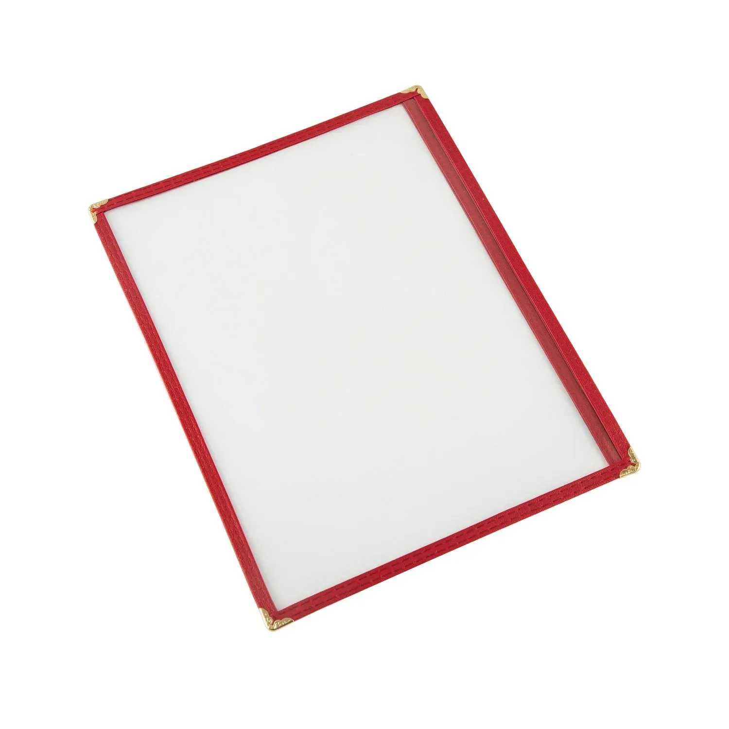 Ideal for creating a professional and appealing table setting, the Red Menu Cover 1-Pocket is a must-have for any restaurant looking to enhance its dining experience. Designed to accommodate standard 8-1/2 x 11" menus, this vibrant red cover adds a touch of elegance and sophistication to your presentation. The single-pocket design ensures that your menu is displayed clearly and securely, making it easy for guests to browse your offerings.