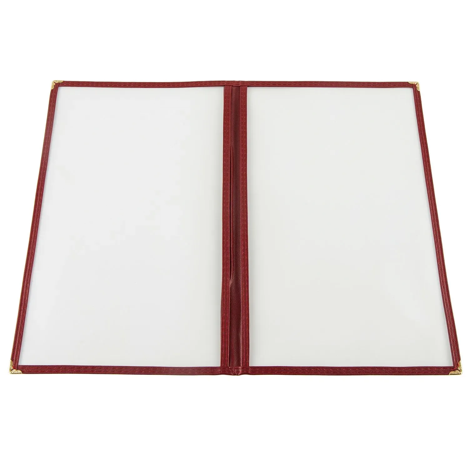 Crafted with precision, the Burgundy Elegance Menu Cover boasts a practical 2-pocket design, allowing for easy organization and presentation of your menu offerings. Measuring 8-1/2 x 14 inches, it provides ample space to showcase your culinary delights while maintaining a sleek and professional appearance. The durable construction ensures that it withstands the rigors of daily use, maintaining its pristine look over time.