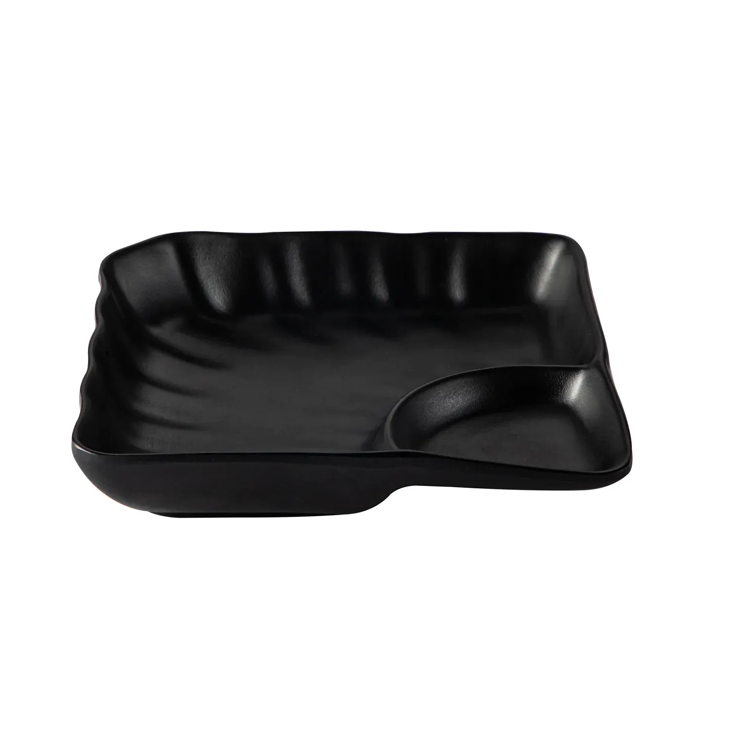 Elevate your dining presentation with our stunning Square Plate featuring a unique Triangular Compartment, meticulously crafted to blend style with functionality. This matte black plate is the epitome of modern elegance, designed to captivate attention while enhancing the culinary experience. Measuring 7 inches, it's the perfect size for a variety of dishes, offering a versatile canvas that complements any table setting. The distinctive triangular compartment provides an innovative touch, ideal for serving sauces, dips, or accompaniments, holding up to 0.5oz with precision. Meanwhile, the main section boasts a generous 4oz capacity, ensuring your culinary creations remain the star of the show. Crafted with restaurant-grade materials, this plate promises durability and a chic aesthetic that withstands the demands of both everyday dining and special occasions. Its matte black finish not only adds a sophisticated edge but also offers a perfect backdrop to highlight the vibrant colors of your dishes, making it a must-have for chefs and home cooks aiming to impress. Whether you're hosting a dinner party or enjoying a family meal, this Square Plate with a Triangular Compartment is designed to enhance your plating artistry and dining experience effortlessly.