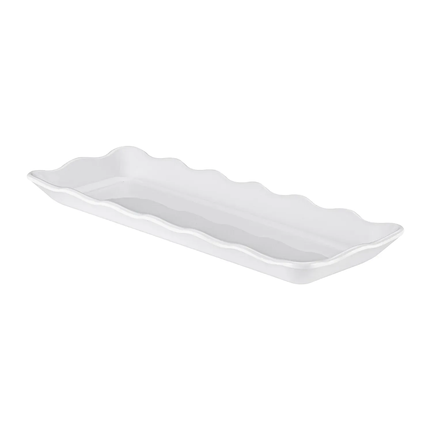 Elevate your dining experience with this exquisite Rectangular Scallop Edge White Platter, designed to bring both elegance and functionality to your table. Measuring a generous 13-1/2" by 5-1/4", this stunning platter offers ample space to showcase your culinary creations, whether you're serving a selection of artisanal cheeses, a vibrant array of appetizers, or a beautifully arranged main course. The pristine white finish provides a versatile backdrop that complements any table setting, while the scalloped edges add a touch of sophistication and charm. Expertly crafted for durability, this platter is perfect for both everyday use and special occasions, seamlessly blending with a variety of dining styles. Its rectangular shape not only enhances presentation but also maximizes space on your table, making it a practical choice for hosts and hostesses who love to entertain. Whether you're hosting an intimate dinner party or a grand celebration, this platter will undoubtedly impress your guests and elevate your dining decor to new heights. Make this timeless piece a staple in your serveware collection and enjoy the perfect combination of style and utility.
