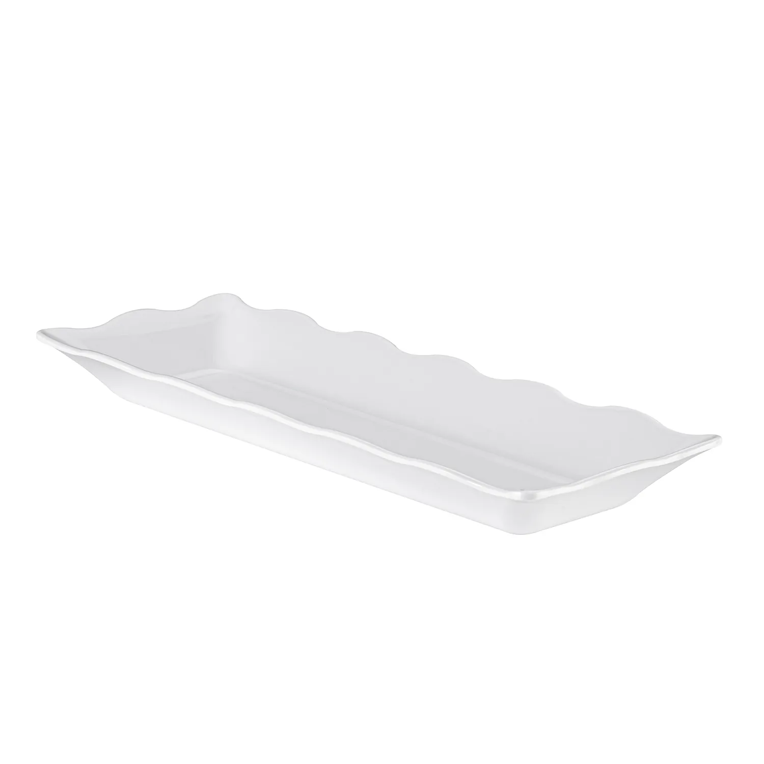 Elevate your dining experience with our exquisite Rectangular Scallop Edge Platter, a perfect blend of elegance and functionality. Crafted with precision, this stunning white platter offers generous dimensions of 17-1/2"x6-3/4", making it an ideal centerpiece for any culinary presentation. The captivating scallop edge design adds a touch of sophistication, enhancing the visual appeal of your table setting. Whether you're hosting a lavish dinner party or a casual family gathering, this platter is the ultimate choice for serving a variety of dishes, from delectable appetizers to sumptuous main courses. Made from high-quality materials, it ensures durability and long-lasting performance, while its classic white finish complements any décor style, from modern to traditional. Designed to meet the needs of both professional chefs and home cooks, this platter combines aesthetics with practicality, providing a versatile solution for your dining needs. Its sleek, easy-to-clean surface ensures effortless maintenance, allowing you to focus on creating memorable moments with your guests. Transform every meal into a gourmet experience with our Rectangular Scallop Edge Platter, where style meets substance in the world of fine dining.