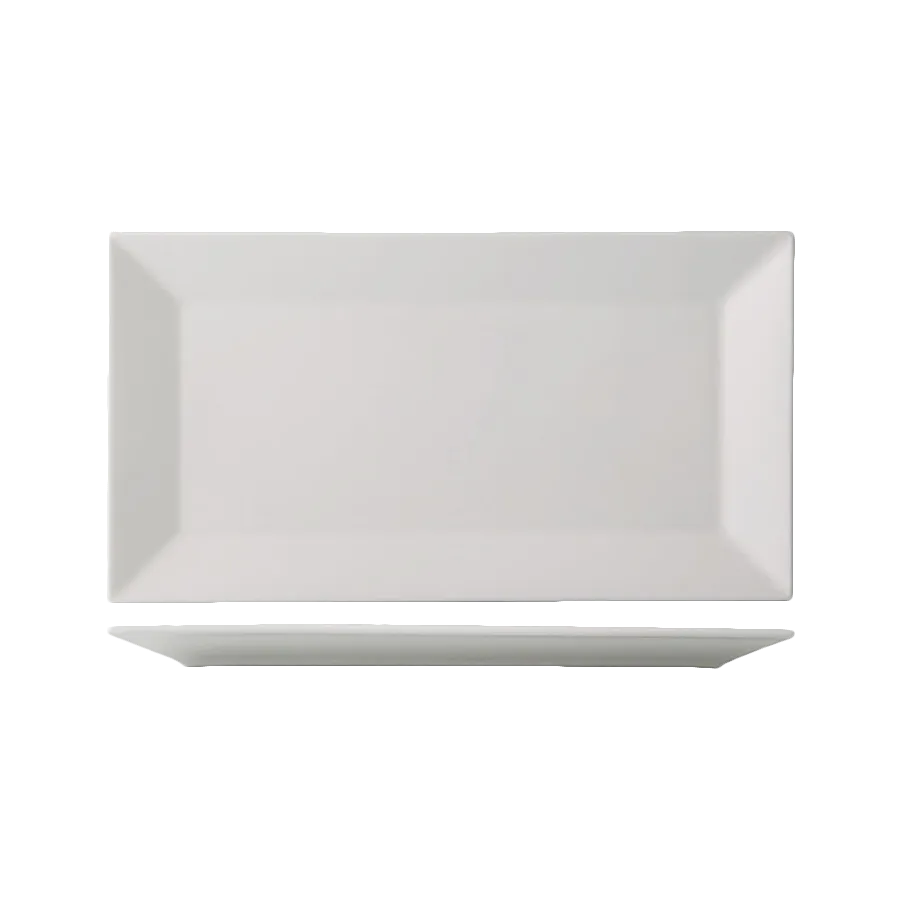 Introducing the CAC China NGA-51 Platter, a must-have for commercial restaurants that strive for excellence. This rectangular Niagara Platter measures 14-3/4"L x 8-3/8"W x 7/8"H, providing ample space to showcase your culinary creations. Made from fully vitrified porcelain, this platter is not only dishwasher safe but also oven and microwave safe, ensuring convenience and versatility in a busy restaurant kitchen. The glazed foot adds a touch of elegance, while the Bone White color complements any table setting. Crafted by CAC China, a trusted name in the industry, this platter sets the standard for excellence. Elevate your restaurant's presentation with the CAC China NGA-51 Platter, designed to impress both visually and functionally.