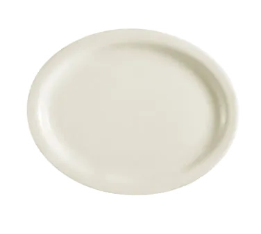 Set your restaurant apart with the CAC China NRC-40 Platter. Crafted by CAC China, a trusted vendor in the industry, this platter is designed to elevate your dining experience. Made of durable stoneware, this oval-shaped platter features a narrow rim, adding a touch of elegance to your presentation. With dimensions of 7-1/8"L x 6-7/8"W x 1/2"H, it provides ample space for showcasing your culinary creations. Whether you're serving appetizers, entrees, or desserts, this platter is dishwasher, oven, and microwave safe, ensuring convenience and versatility in a busy commercial restaurant setting. Its American White color complements any table setting, making it a versatile addition to your restaurant's dinnerware collection.