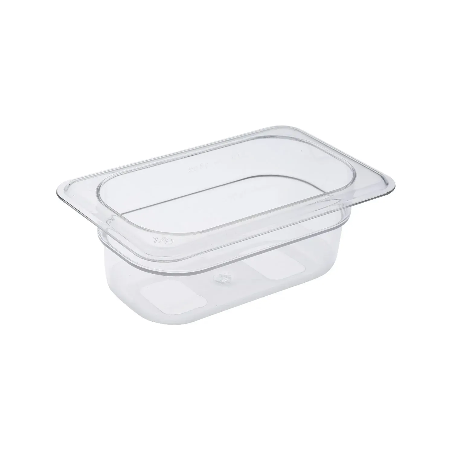 A must-have for chefs who value both style and function, the PCFP-N2 Food Pan is an essential addition to any restaurant kitchen. Crafted from high-quality polycarbonate, this 1/9 size food pan is designed to withstand the rigors of a bustling culinary environment while maintaining its sleek appearance. With a depth of 2-1/2 inches, it offers ample space for storing and organizing ingredients, making it ideal for mise en place or buffet setups.