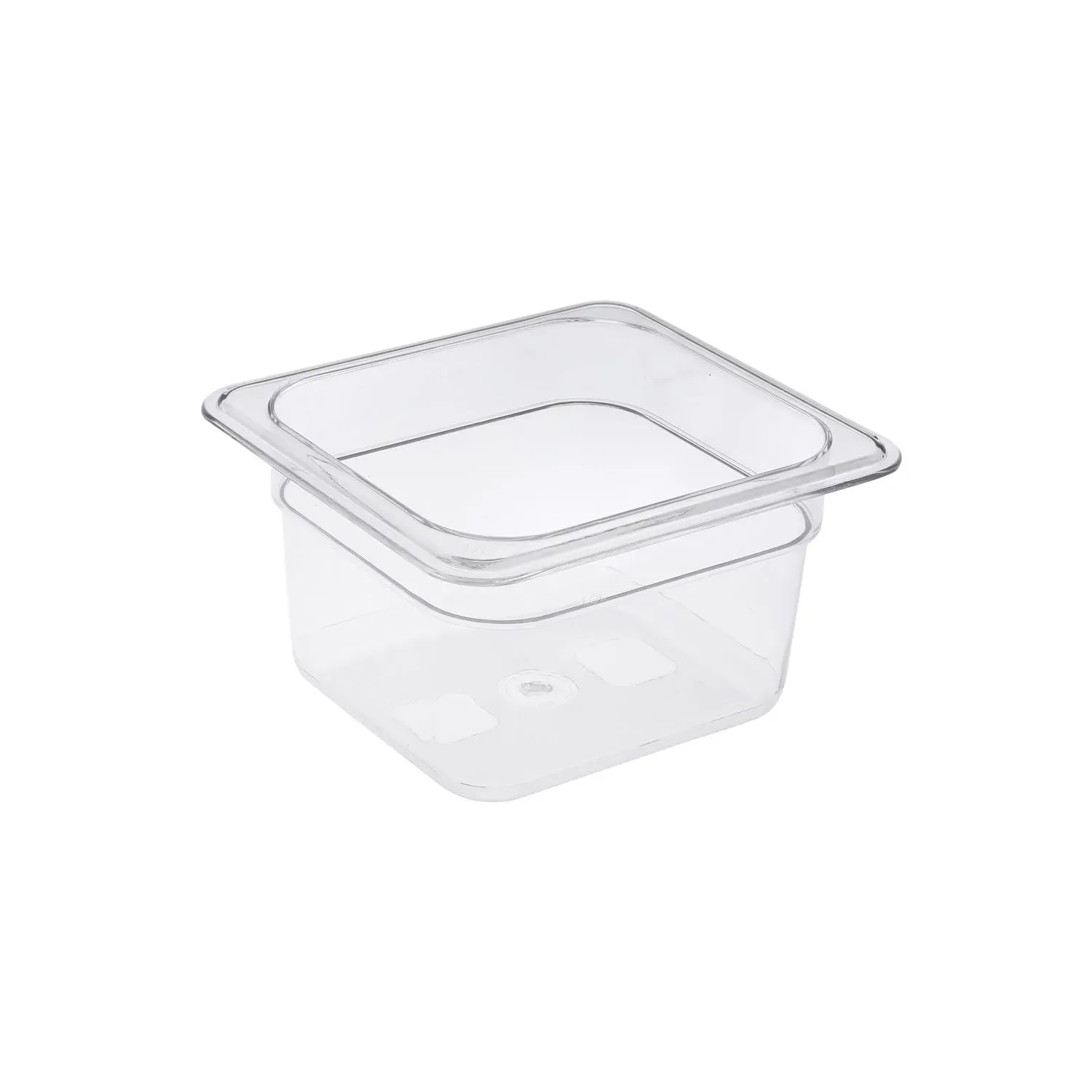 Designed to withstand heavy use in restaurants and kitchens, the PCFP-S4 Food Pan is an essential addition to any culinary establishment. Crafted from durable polycarbonate (PC), this 1/6 size food pan is built to endure the rigors of a bustling kitchen environment. With a depth of 4 inches, it offers ample space for storing and organizing a variety of ingredients, from fresh produce to prepared dishes, ensuring that your kitchen operations run smoothly and efficiently.