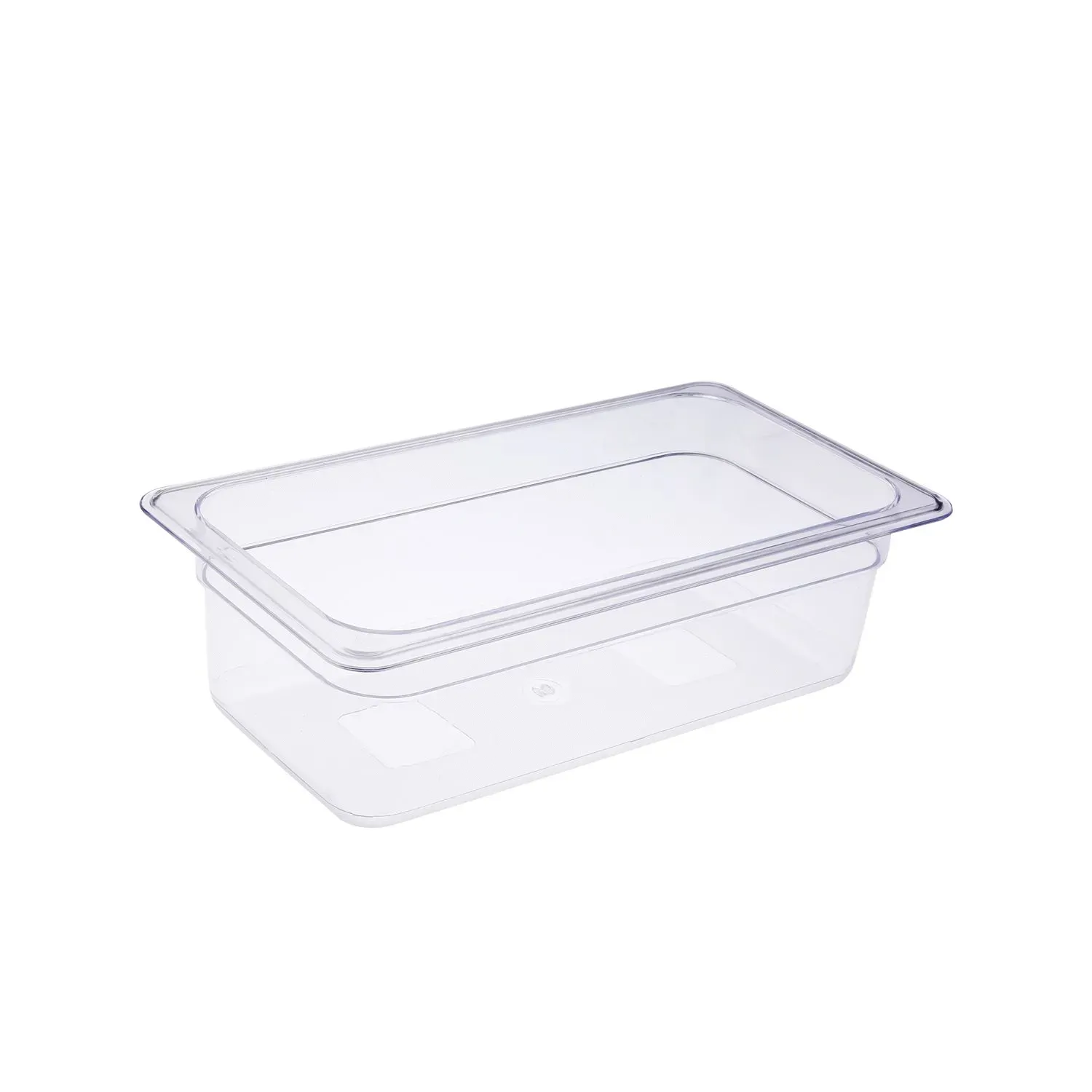 Perfect for foodservice professionals who value both quality and style, the PCFP-T4 Food Pan is an essential addition to any restaurant kitchen. Designed with precision, this 1/3 size food pan is crafted from durable polycarbonate (PC), ensuring it withstands the rigors of a bustling kitchen environment. With a depth of 4 inches, it offers ample space for storing and serving a variety of dishes, from fresh salads to hearty stews.