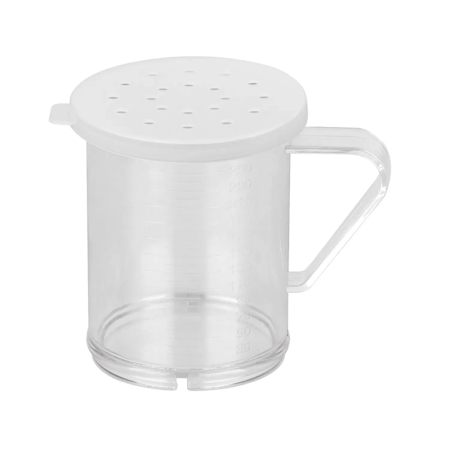 Introducing the versatile and essential Dredge PC 10oz with Lid, designed to elevate your culinary creations with precision and ease. Crafted for both professional chefs and home cooking enthusiasts, this clear dredge combines functionality with durability, thanks to its premium polycarbonate construction. The 4mm design ensures optimal flow control, allowing for a perfectly even distribution of your favorite seasonings, spices, or powdered ingredients. Its transparent body provides quick and easy content identification, while the secure-fitting lid keeps contents fresh and prevents spills, making it an indispensable tool for busy kitchens. Whether you're dusting flour onto dough or adding a finishing touch of powdered sugar to desserts, the Dredge PC offers unmatched convenience and efficiency. Its ergonomic design fits comfortably in hand, ensuring a firm grip during use. Elevate your kitchen experience and streamline your food preparation process with this must-have accessory that combines practicality with professional-grade quality. Perfect for any culinary setting, the Dredge PC 10oz with Lid is your go-to solution for consistent, flavorful results every time.
