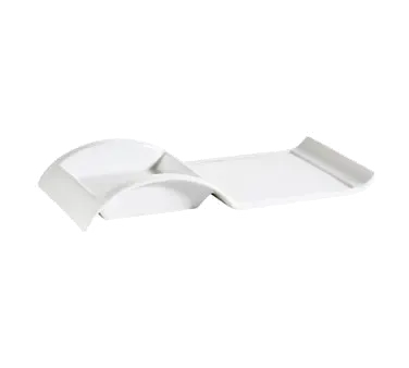 Introducing the CAC China PLT-10 Plate/Platter, Compartment, China a must-have for commercial restaurants looking to elevate their reputation. Crafted with precision by CAC China, this rectangular porcelain platter is designed to impress. Measuring 10"L x 5"W x 1-1/2"H, it comes with a square holder, adding a touch of elegance to your presentation. The Bone White color exudes sophistication, making it perfect for upscale dining establishments.