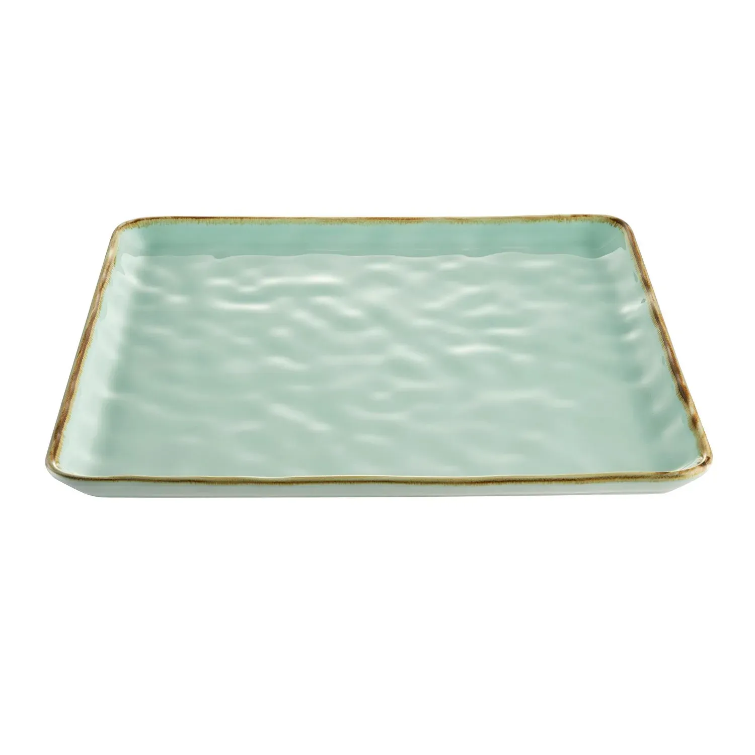Crafted from high-quality porcelain, this plate features a reactive glaze finish in a soothing light green hue, adding a touch of elegance and sophistication to your dining experience. The square shape of the Palm Springs Square Plate not only provides a modern aesthetic but also maximizes surface area, allowing for versatile use in various dining settings.