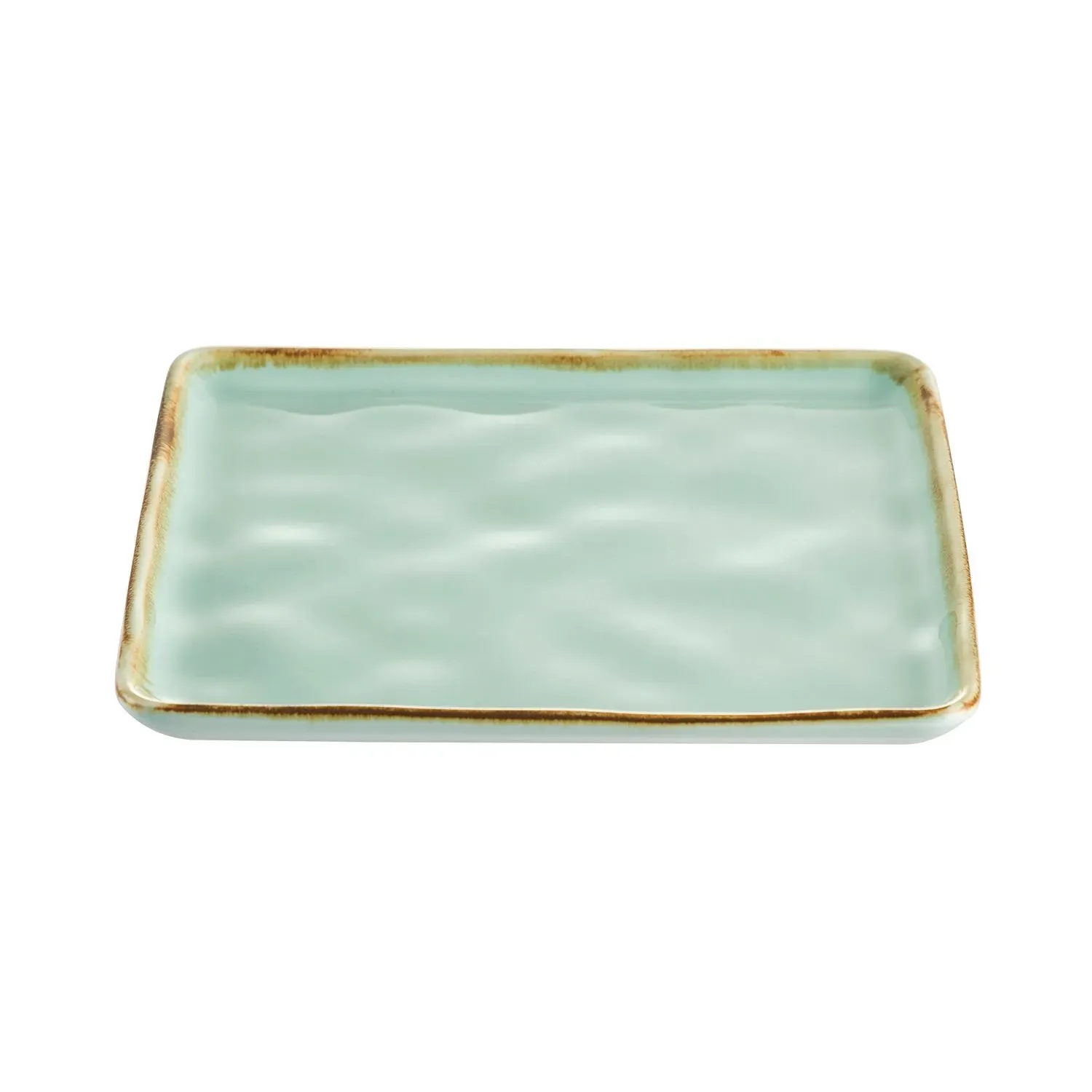 Durable and functional for everyday use in busy kitchens, the Palm Springs Plate is an essential addition to any restaurant's tableware collection. With its precise dimensions of 6 inches by 6 inches and a height of 3/8 inch, this square porcelain plate is designed to present culinary creations with elegance and style. The reactive glaze finish in a soothing light green hue adds a touch of sophistication, making it perfect for both casual and fine dining settings.