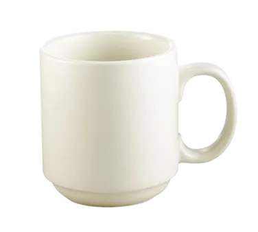 Transform tabletop settings with the CAC China PRM-10-W Mug. This mug is a must-have for any commercial restaurant looking to elevate their dining experience. Crafted with stoneware (ceramic), it exudes a sense of authenticity and durability that is perfect for busy restaurant environments. With a 10 oz. capacity and a round shape, it offers ample space for serving hot beverages like coffee, tea, or hot chocolate. The stacking design allows for easy storage, optimizing space in your restaurant's kitchen. Not only is it dishwasher safe, but it is also oven and microwave safe, providing convenience and versatility. The American White color adds a touch of elegance to any table setting.