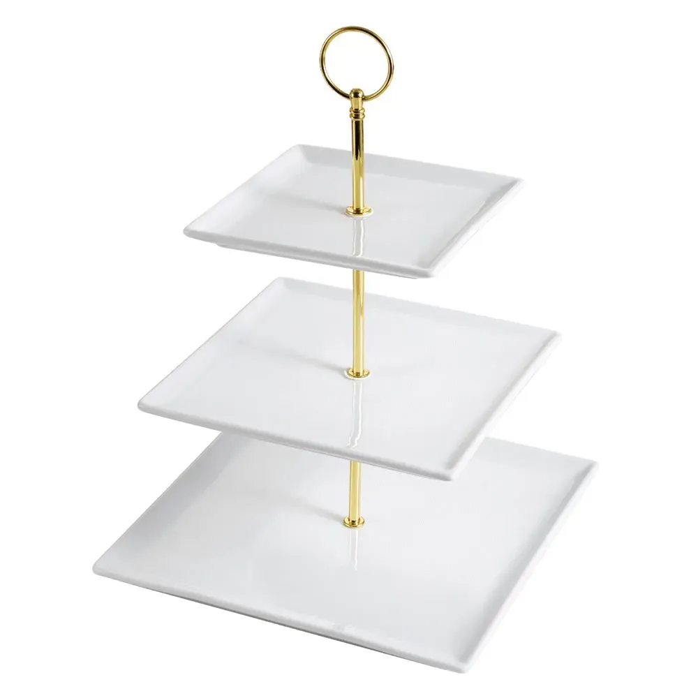 High-quality kitchenware perfect for both professional chefs and home cooks, the PTE-SQ3 Catering Collection Serving Tray is an essential addition to any restaurant setting. This elegant 3-tier serving tray is designed to elevate your presentation, featuring a super white porcelain finish that complements any decor. The tray includes a 10" x 10" base tier, an 8" x 8" middle tier, and a 6-1/4" x 6-1/4" top tier, all standing at a total height of 14".