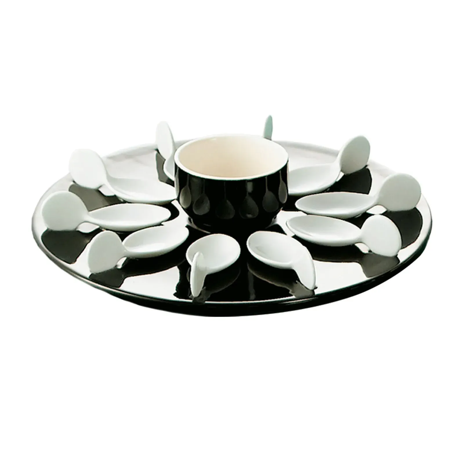 Experience quality dining with the CAC China, PTP-21-BLK Serving & Display Tray. This versatile and stylish tray is perfect for commercial restaurant use. Made of durable porcelain, it is dishwasher, oven, and microwave safe, ensuring convenience and ease of use in a busy kitchen. The set includes 10 tasting spoons, a 7 oz. bowl, and a round tray, providing everything you need to serve and display your culinary creations. The sleek black and super white design adds a touch of elegance to any table setting, making it ideal for upscale restaurants and fine dining establishments. Whether you're serving appetizers, desserts, or small bites, this tasting spoon set is a must-have for showcasing your culinary expertise. Elevate your dining experience with the CAC China, PTP-21-BLK Serving & Display Tray.