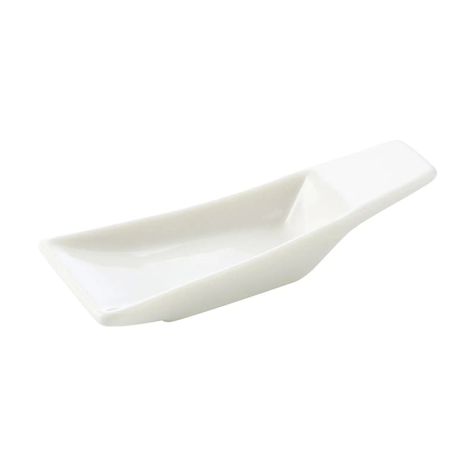 Upgrade your commercial restaurant with the CAC China PTS-35 Spoon. This rectangular spoon from the Party Collection is designed to meet modern demands. With dimensions of 3-3/4"L x 1-1/2"W x 1"H, it is the perfect size for serving appetizers, desserts, and more. Made of durable porcelain, this spoon is dishwasher, oven, and microwave safe, ensuring convenience and versatility in a busy restaurant kitchen. The super white color adds a touch of elegance to any table setting, making it ideal for upscale dining establishments. Trust CAC China, a reputable vendor in the industry, to deliver high-quality products that meet the demands of a commercial restaurant. Upgrade your serving utensils with the CAC China PTS-35 Spoon today.