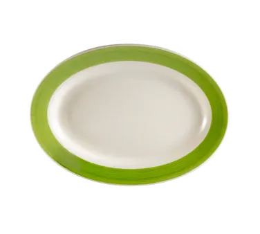 Create a seamless dining experience with the CAC China R-13-G Platter. This stunning oval platter is perfect for commercial restaurant use, adding a touch of elegance to any table setting. Crafted from durable stoneware, this platter is dishwasher, oven, and microwave safe, making it incredibly versatile for busy restaurant kitchens. The rolled edge design adds a stylish touch while also preventing spills and drips. With dimensions of 11-1/2"L x 8-1/4"W x 1-1/4"H, this platter provides ample space for showcasing your culinary creations. The vibrant green color of the platter adds a pop of color to your presentation, making your dishes even more enticing.