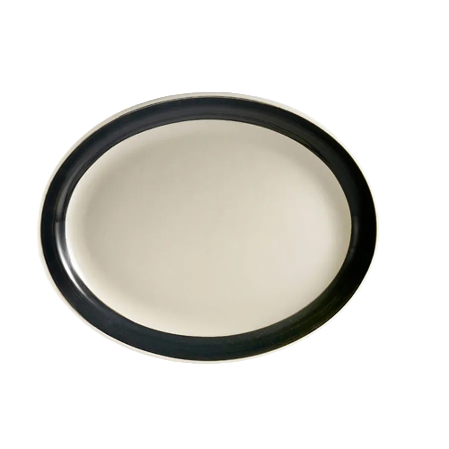 Experience the difference with the CAC China R-14NR-BLK Platter. This stunning platter is designed to elevate your restaurant's presentation and impress your guests. Crafted from durable stoneware, this oval-shaped platter features a narrow rim, adding a touch of elegance to any dish. Its sleek black color adds a modern and sophisticated touch to your table setting. With dimensions of 13-1/2"L x 10-1/8"W x 1-1/2"H, this platter provides ample space to showcase your culinary creations.