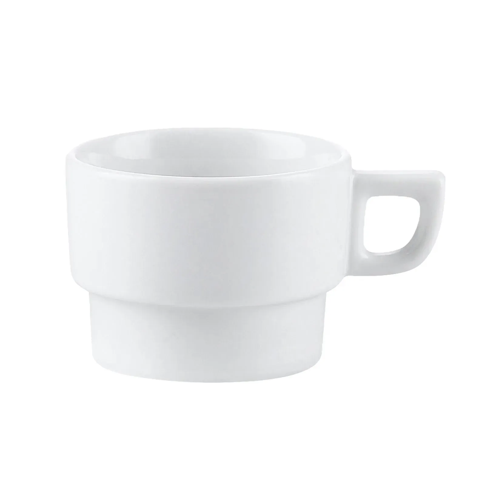 Maximize productivity with the CAC China RCN-1-F Cups. Designed for commercial restaurant use, these cups are a must-have for any food establishment. Made of durable porcelain, they are built to withstand the demands of a busy kitchen. The 7 oz. capacity is perfect for serving hot beverages, soups, or desserts. With a round shape and a convenient handle, these cups are easy to hold and serve. They are stackable, allowing for efficient storage and organization. The Super White color adds a touch of elegance to any table setting. These cups are dishwasher, oven, and microwave safe, making them versatile and easy to clean. Whether you're running a café©, restaurant, or catering business, the CAC China RCN-1-F Cups are the perfect choice for serving your customers with style and efficiency.