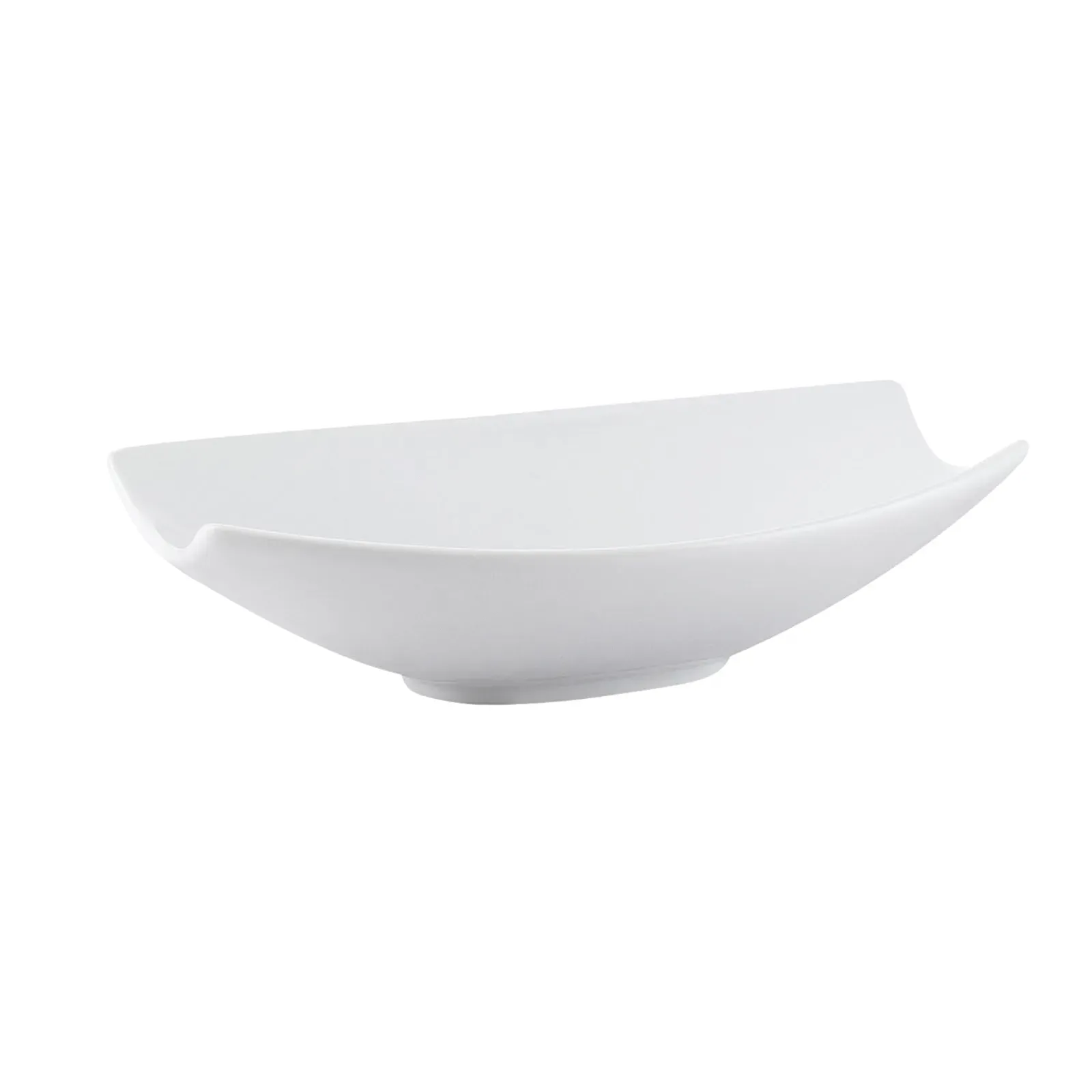 Enhance tabletop aesthetics with the CAC China RCN-B509 China Bowl. This 22 oz. specialty bowl is perfect for commercial restaurant use, adding a touch of elegance to any dining experience. Made of durable porcelain, this deep oval bowl is dishwasher, oven, and microwave safe, ensuring convenience and versatility in a busy kitchen. The Super White color adds a clean and sophisticated look to your table setting, while the generous size of the bowl allows for ample portions of soups, salads, and other delicious dishes. With a length of 9-5/8", width of 6-1/2", and height of 2-1/4", this bowl is designed to meet the needs of a bustling restaurant environment.