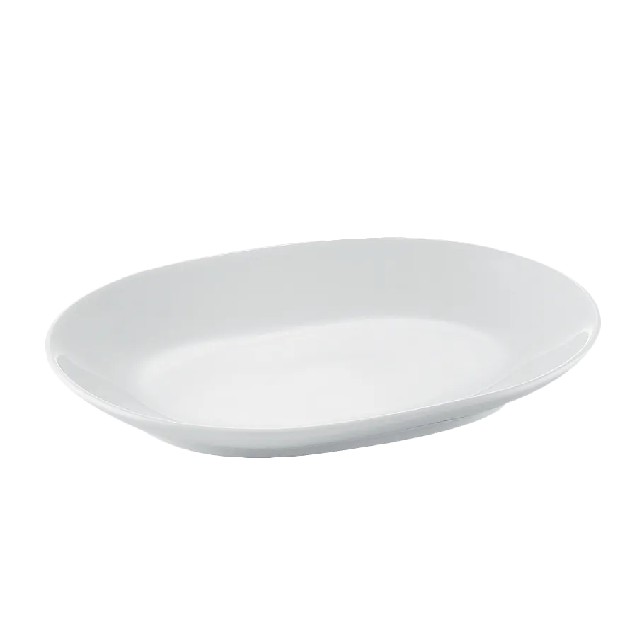 Set your restaurant apart with the CAC China RCN-CD12 Platter. This oblong, coupe-style platter is designed to elevate your culinary creations and impress your guests. With dimensions of 9-7/8"L x 7-1/2"W x 1"H, it provides ample space for showcasing appetizers, entrees, or desserts. Made of durable porcelain, this platter is dishwasher, oven, and microwave safe, ensuring easy cleaning and versatility in the kitchen. Its Super White color adds a touch of elegance to any table setting, making it perfect for upscale restaurants or fine dining establishments. Whether you're serving a delectable seafood dish or a mouthwatering steak, the CAC China RCN-CD12 Platter is the perfect choice for showcasing your culinary creations and creating a memorable dining experience.