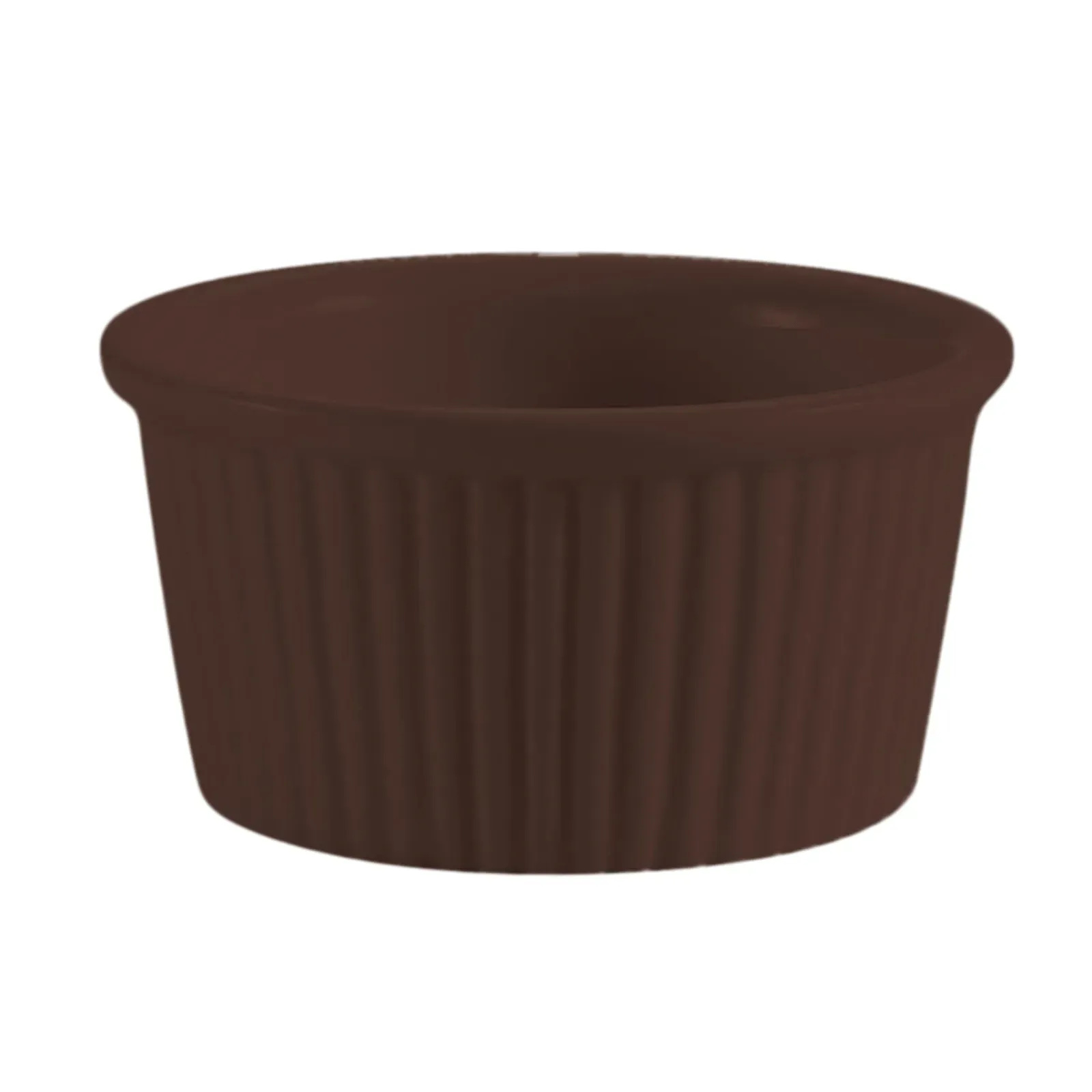 Upgrade your restaurant's tableware with the CAC China RKF-4-BWN Ramekin/Sauce Cup. This high-quality stoneware (ceramic) cup is designed for superior performance in commercial restaurant settings. With a capacity of 4 oz. and a diameter of 3-1/8", it's perfect for serving individual portions of sauces, condiments, or desserts. The round, fluted design adds an elegant touch to any table setting, while the dishwasher, oven, and microwave-safe construction ensures easy cleaning and versatility. Whether you're running a fine dining establishment or a casual eatery, this CAC China RKF-4-BWN Ramekin/Sauce Cup is a must-have addition to your tableware collection. Elevate your presentation and impress your customers with this durable and stylish ramekin.