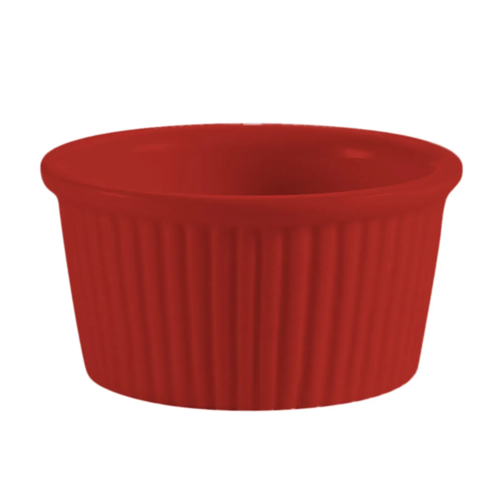 Craft culinary wonders with the CAC China RKF-6-R Ramekin/Sauce Cup. This authentic and high-quality stoneware (ceramic) dish is designed for commercial restaurant use, making it the perfect addition to any professional kitchen. With a generous 6 oz. capacity and a round, fluted shape, this ramekin is ideal for serving individual portions of sauces, condiments, or desserts. Its vibrant red color adds a touch of elegance to any table setting, while its dishwasher, oven, and microwave-safe properties ensure easy and convenient use. Whether you're serving up delectable appetizers or mouthwatering desserts, the CAC China RKF-6-R Ramekin/Sauce Cup is a must-have for any culinary professional looking to elevate their dishes and impress their guests.