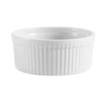 Innovate with quality solutions with the CAC China RKF-8 Ramekin/Sauce Cup. This versatile and durable porcelain dish is perfect for commercial restaurant use. With a capacity of 8 oz. and a diameter of 4", it is ideal for serving individual portions of sauces, condiments, or desserts. The round, fluted design adds an elegant touch to any table setting, while the Super White color enhances the presentation of your culinary creations. This ramekin is dishwasher, oven, and microwave safe, providing convenience and efficiency in a busy kitchen. Trust CAC China, a reputable vendor known for their high-quality products, to elevate your dining experience with the RKF-8 Ramekin/Sauce Cup.
