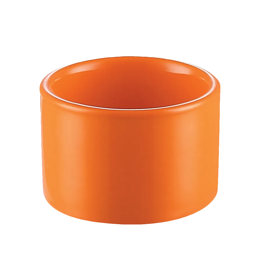 Create a seamless experience with the CAC China RKF-C4-TNG Ramekin/Sauce Cup. This high-quality stoneware (ceramic) dish is perfect for commercial restaurant use. With a capacity of 5 oz. and a diameter of 3", it's ideal for serving individual portions of sauces, condiments, or desserts. The round, straight design adds a touch of elegance to any table setting, while the vibrant Tangerine color adds a pop of excitement. This ramekin is not only dishwasher safe but also oven and microwave safe, providing convenience and versatility in a busy kitchen. Trust CAC China, a reputable vendor in the industry, to deliver exceptional quality and style to your establishment.